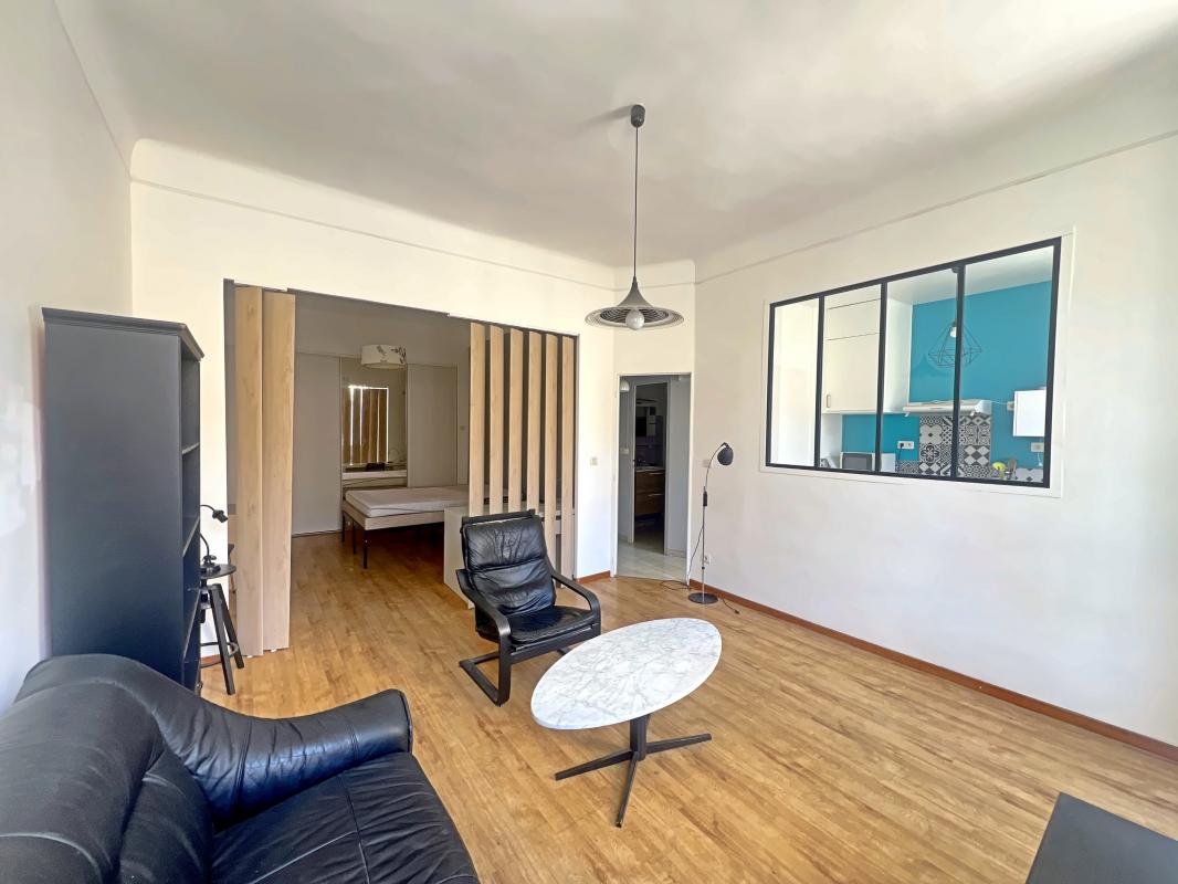 Marseille – au coeur du 4ème arrondissement, à 15 minutes à pied du Palais Longchamp et de ses magnifiques jardins, venez découvrir ce bel appartement en premier étage de type 1bis aux beaux volumes et à la hauteur sous plafond intéressante (quasiment 3 mètres). L’appartement, entièrement en double vitrage, se compose d’un hall d’entrée ouvrant sur la cuisine indépendante et aménagée communiquant via une verrière avec la pièce de vie éclairée de deux belles ouvertures. L’espace nuit s’organise en une grande pièce de plus de 15m2 complétée d’un grand placard-dressing. Ce bien est soumis au statut de la copropriété.