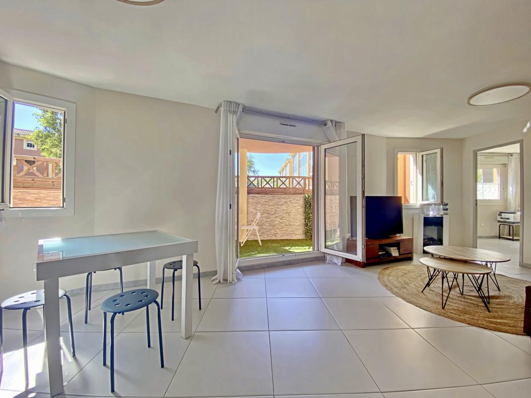 Il se compose comme suit : Une pièce à vivre de 28 m2 comprenant un espace salon-séjour et une cuisine ouverte, aménagée et équipée. La pièce à vivre ouvre sur la terrasse couverte de 11m2 exposée plein Sud. Les 2 chambres sont spacieuses avec respectivement 11 et 15 m2 et bénéficient chacune d’un grand dressing. La salle de bain avec baignoire et WC est fonctionnelle. La climatisation est présente pour un confort optimal l’été.